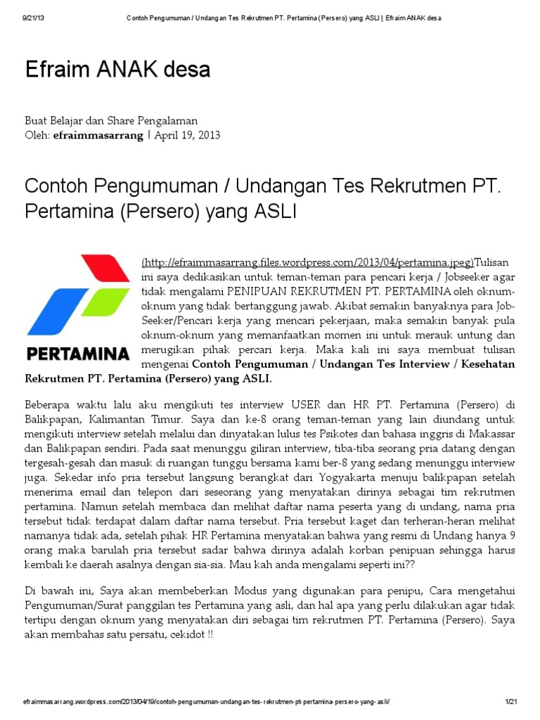 Doc Surat Resmi Pt Pertamina Jakarta Husain Part Ii Academia Edu from 0.academia-photos.com Contoh soal psikotes online pertamina ruang ilmu from 4.bp.blogspot.com Dan parahnya gue stuck waktu baru selesai kerjain work personality 1 dan tiba tiba down, gue refresh terus sampai ada tulisan waktu habis tapi gue reload terus eh tiba tiba ada tulisan business english padahal work personality 2 sama 3 belom keisi sama sekali. Pengalaman tes online pertamina 2018 velonia s tips. Pengalaman menjadi bps pep ini tidak akan pernah bisa terlupakan deh. Disini akan cukup lengkap pemeriksaan dari darah, gigi, panca indera dan kondisi kebugaran badan. Setelah wawancara user selanjutnya adalah medical check up, untuk wilayah jakarta biasanya di pertamedika gambir, seluruh fingsi mcu secara barengan. Apakah program bps pertamina group itu? Sebelum masuk kedalam bahasan pengalaman mengikuti test bps bpa pertamina.